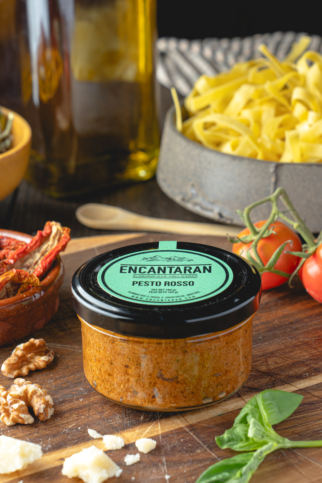 Tomates San Marzano deshidratados al sol y conservados en aceite de oliva virgen extra, aromatizados con hierbas de montaña y madurados durante un mínimo de 8 semanas.